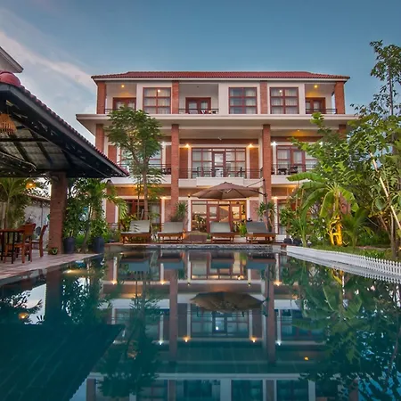 庭園の景色を見渡すEco Villa シェムリアップホテルは、アンコール・ワットから4.6キロメートル離れた所です。 9の客室のあるビーアンドビーは、プールもあります。